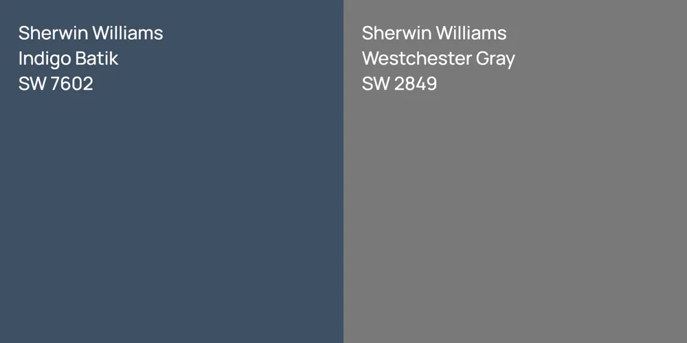 Sherwin Williams SW 7602 and SW 2849 differ significantly in saturation. Sherwin Williams SW 7602 is more saturated.