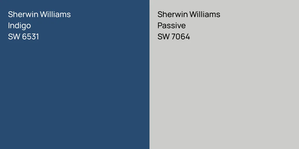 Sherwin Williams SW 6531 and SW 7064 differ significantly in saturation. Sherwin Williams SW 6531 is more saturated.