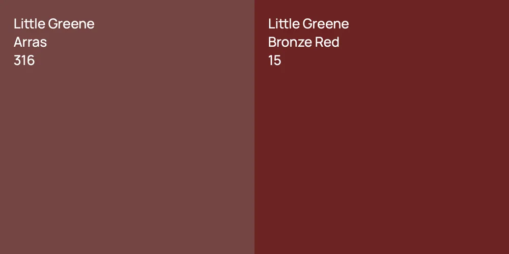 Despite their differences, both colors share a similar value, Little Greene 316 radiating a lighter essence compared to 15.