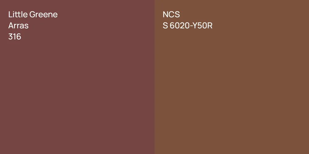 The colors, each unique in their hue and saturation, embody their own individual beauty and value. It's important to note that the colors have different hues. Little Greene 316 leans towards hues, while NCS S 6020-Y50R is .