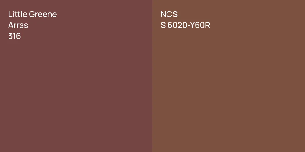 The colors, each unique in their hue and saturation, embody their own individual beauty and value. It's important to note that the colors have different hues. Little Greene 316 leans towards hues, while NCS S 6020-Y60R is .