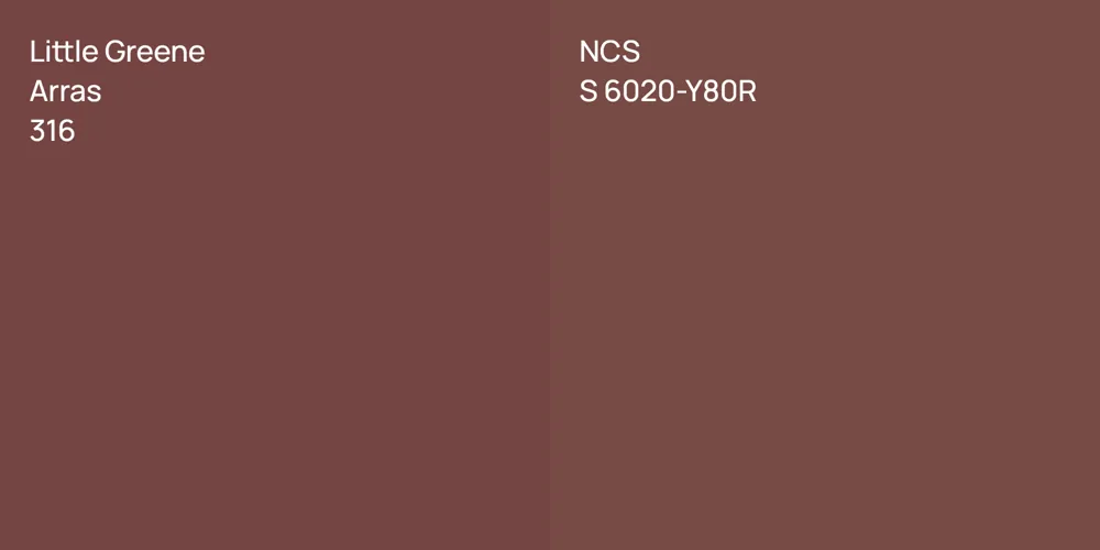 Despite their differences, both colors share a similar value, with Little Greene 316 is being darker.