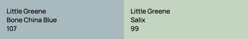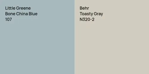 Despite their differences, both colors share a similar value, Little Greene 107 radiating a lighter essence compared to CSP-595.