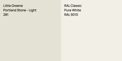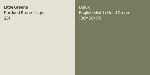 Despite their differences, both colors share a similar value, Little Greene 281 radiating a lighter essence compared to 10678.