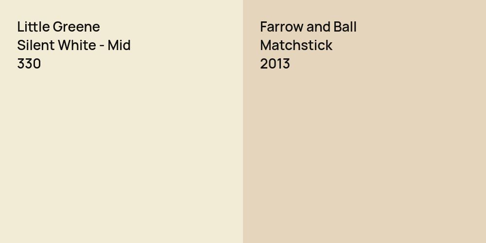 Despite their differences, both colors share a similar value, Little Greene 330 radiating a lighter essence compared to 2013.