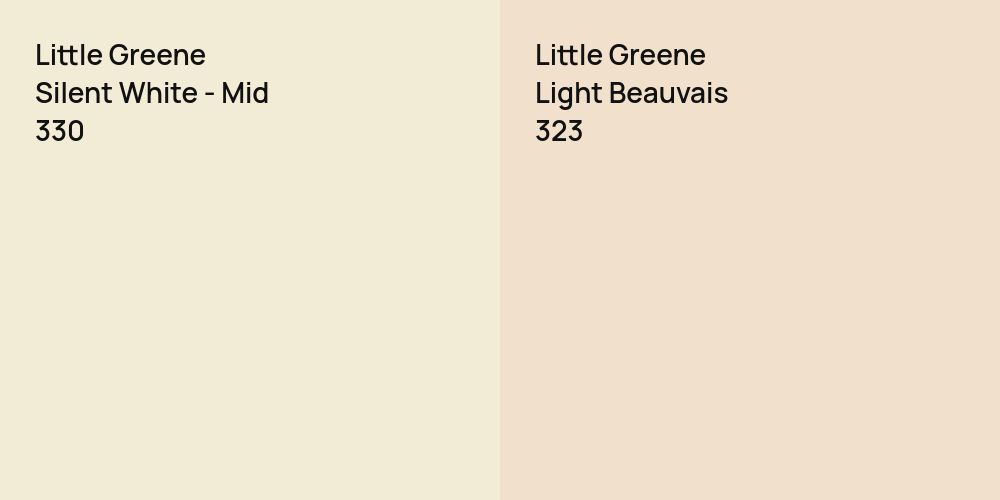 Despite their differences, both colors share a similar value, Little Greene 330 radiating a lighter essence compared to 323.