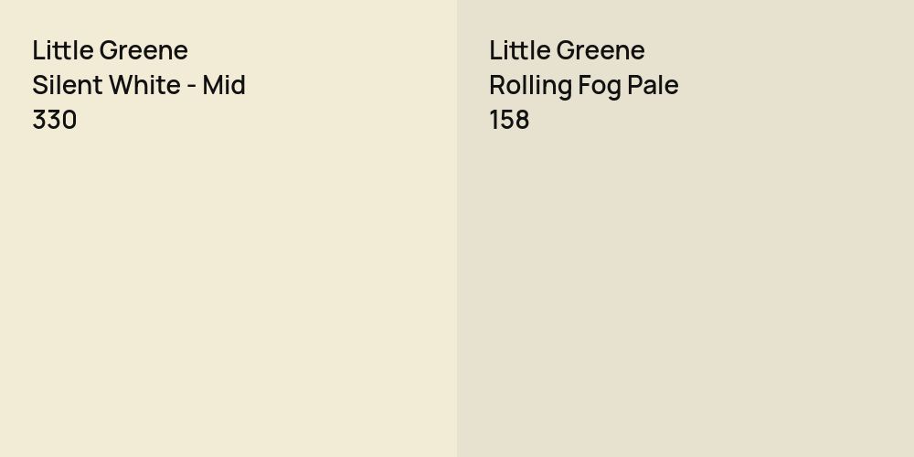 Despite their differences, both colors share a similar value, Little Greene 330 radiating a lighter essence compared to 158.