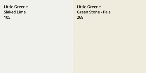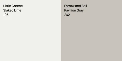 Despite their differences, both colors share a similar value, Little Greene 105 radiating a lighter essence compared to 1.