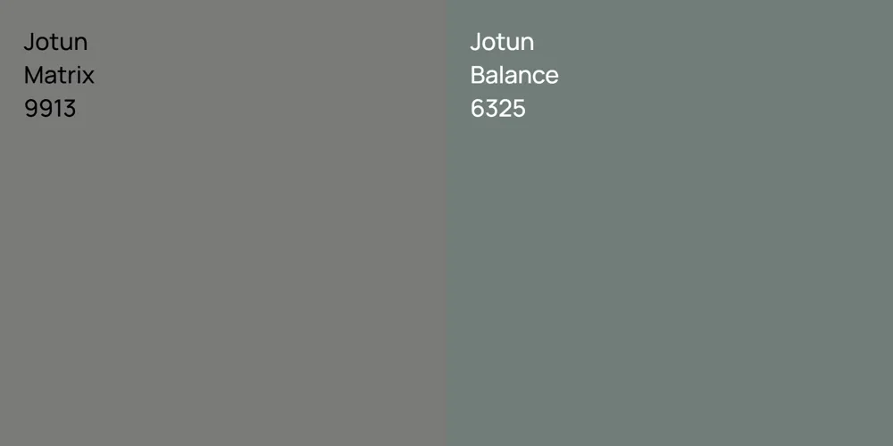 Despite their differences, both colors share a similar value, Jotun 9913 radiating a lighter essence compared to 6325.