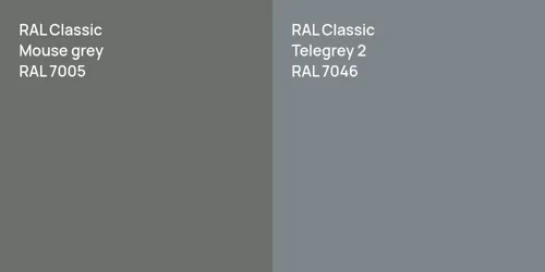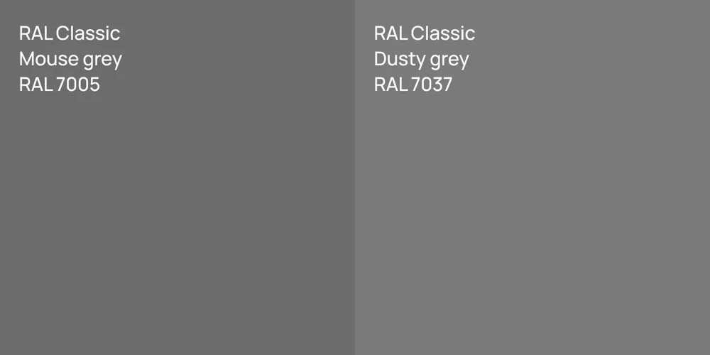 Despite their differences, both colors share a similar value, with RAL Classic RAL 7005 is being darker.