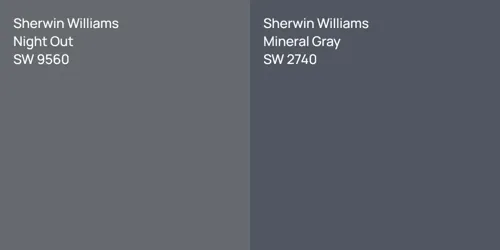 Compare Sherwin Williams Night Out with other colors. Understand the differences in hue, saturation, lightness, and value.