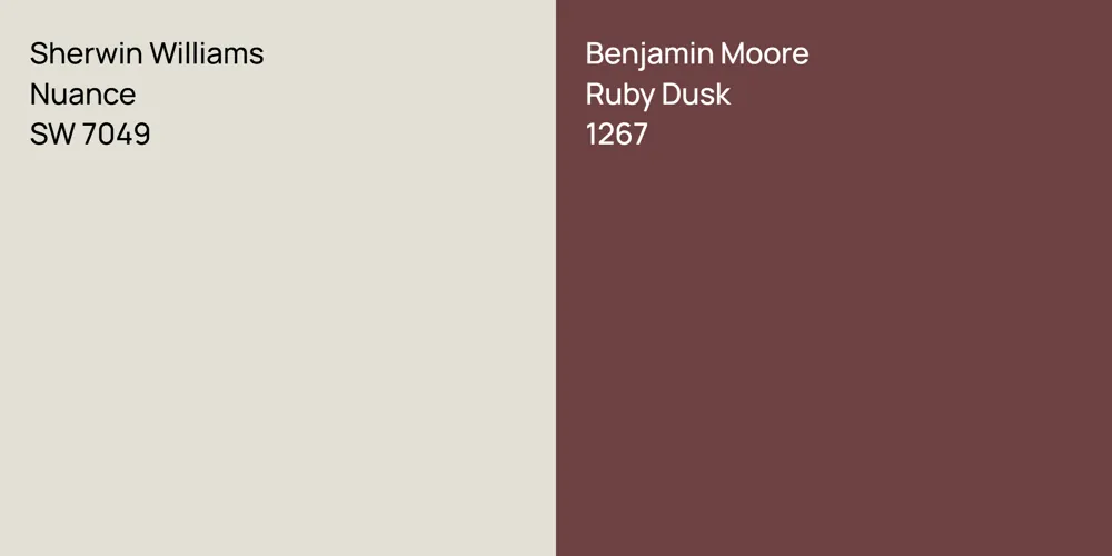 We understand how important it is to remember the details. The colors, each with their own unique beauty and value, are truly special. It's important to note that the colors have different hues. Sherwin Williams SW 7049 leans towards hues, while Benjamin Moore 1267 is .