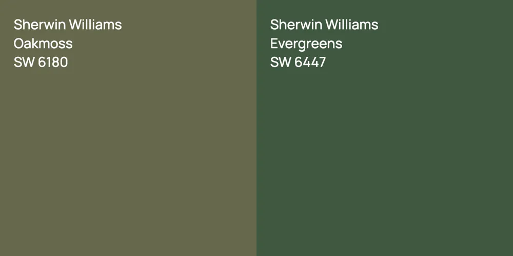 Despite their differences, both colors share a similar value, Sherwin Williams SW 6180 radiating a lighter essence compared to SW 6447.