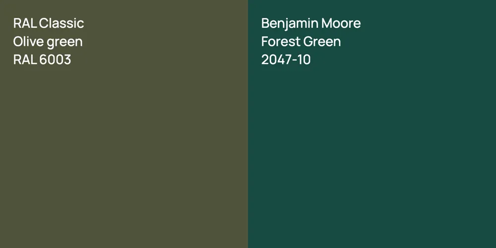 We understand how important it is to remember the details. The colors, each with their own unique beauty and value, are truly special. It's important to note that the colors have different hues. RAL Classic RAL 6003 leans towards hues, while Benjamin Moore 2047-10 is .