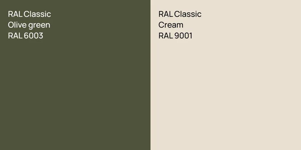 The colors, each unique in their hue and saturation, embody their own individual beauty and value. It's important to note that the colors have different hues. RAL Classic RAL 6003 leans towards hues, while RAL Classic RAL 9001 is .