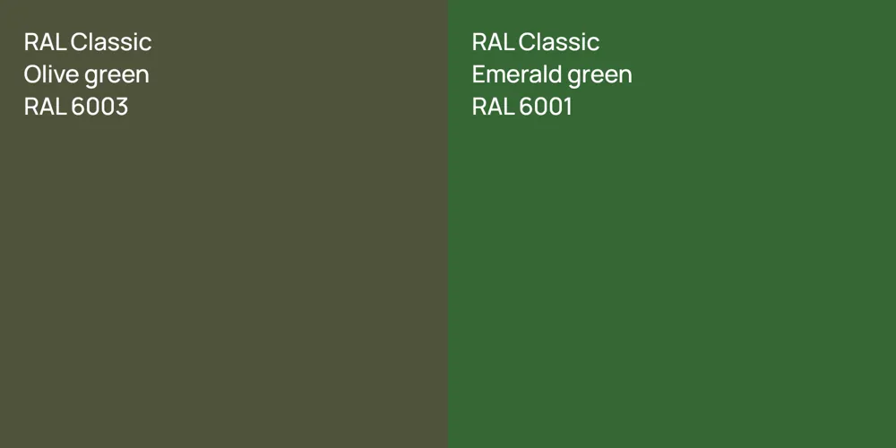 Despite their differences, both colors share a similar value, with RAL Classic RAL 6003 is being darker.