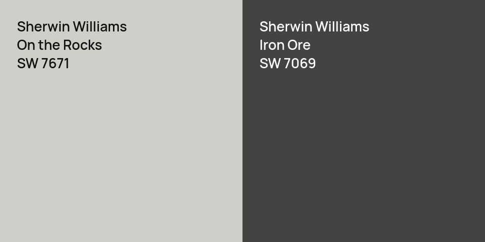 Sherwin Williams SW 7671 and SW 7069 differ significantly in saturation. Sherwin Williams SW 7671 is more saturated.