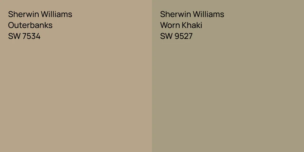 Despite their differences, both colors share a similar value, Sherwin Williams SW 7534 radiating a lighter essence compared to SW 9527.