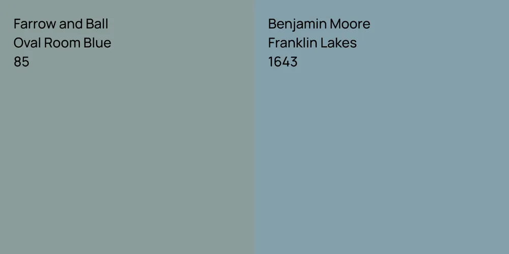 We understand how important it is to remember the details. The colors, each with their own unique beauty and value, are truly special. It's important to note that the colors have different hues. Farrow and Ball 85 leans towards hues, while Benjamin Moore 1643 is .