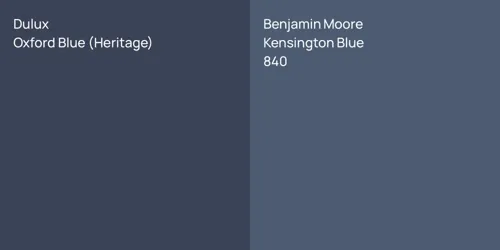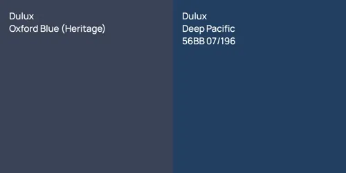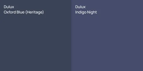 Dulux Oxford Blue (Heritage) and 117 differ significantly in saturation. Dulux Oxford Blue (Heritage) is more saturated.