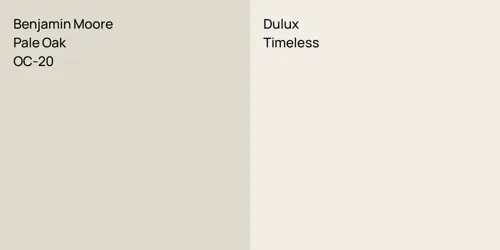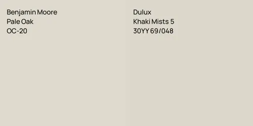 Despite their differences, both colors share a similar value, with Benjamin Moore OC-20 is being darker.