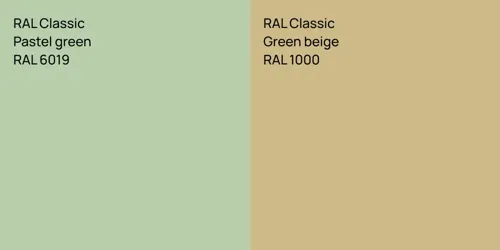 RAL Classic RAL 6019 and RAL 7034 differ significantly in saturation. RAL Classic RAL 6019 is more saturated.