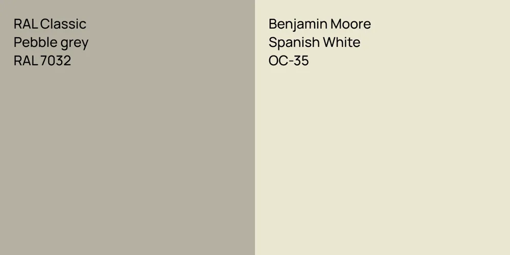 RAL Classic Pebble grey vs. Benjamin Moore Spanish White