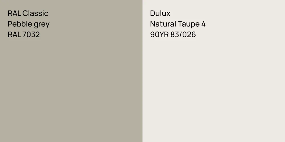 We understand how important it is to remember the details. The colors, each with their own unique beauty and value, are truly special. It's important to note that the colors have different hues. RAL Classic RAL 7032 leans towards hues, while Dulux 90YR 83/026 is .