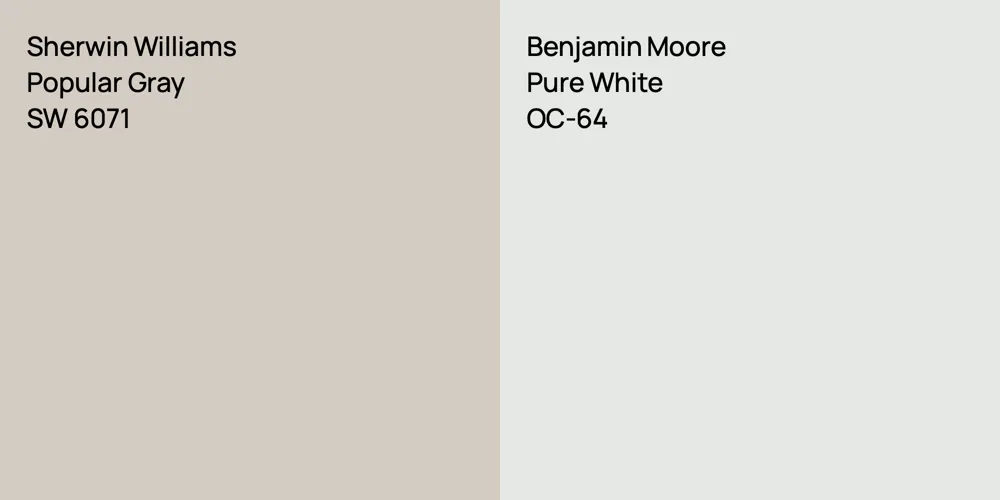 We understand how important it is to remember the details. The colors, each with their own unique beauty and value, are truly special. It's important to note that the colors have different hues. Sherwin Williams SW 6071 leans towards hues, while Benjamin Moore OC-64 is .