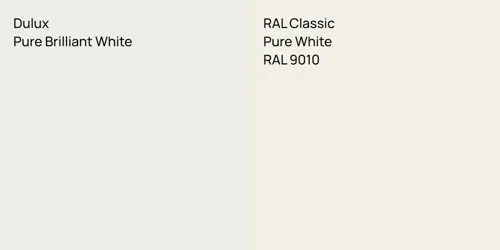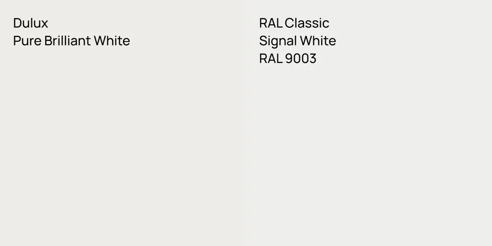Dulux Pure Brilliant White and RAL 9003 differ significantly in saturation. Dulux Pure Brilliant White is more saturated.