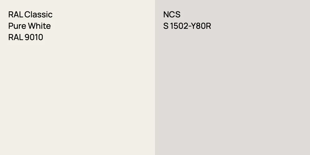 Despite their differences, both colors share a similar value, RAL Classic RAL 9010 radiating a lighter essence compared to S 1502-Y80R.