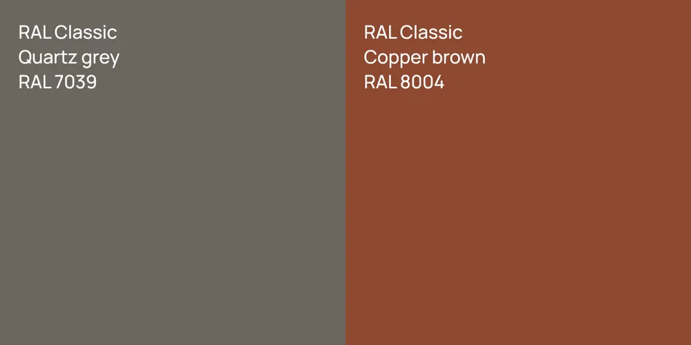 Despite their differences, both colors share a similar value, RAL Classic RAL 7039 radiating a lighter essence compared to RAL 8004.