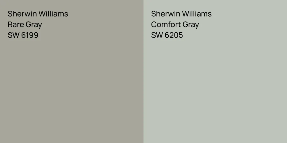 The colors, each unique in their hue and saturation, embody their own individual beauty and value. It's important to note that the colors have different hues. Sherwin Williams SW 6199 leans towards hues, while Sherwin Williams SW 6205 is .