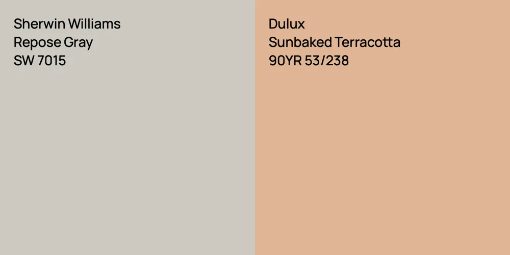 The colors, each unique in their hue and saturation, embody their own individual beauty and value. It's important to note that the colors have different hues. Sherwin Williams SW 7015 leans towards hues, while Dulux 90YR 53/238 is .