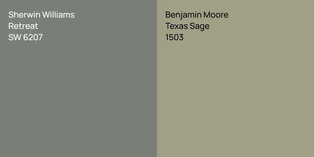 We understand how important it is to remember the details. The colors, each with their own unique beauty and value, are truly special. It's important to note that the colors have different hues. Sherwin Williams SW 6207 leans towards hues, while Benjamin Moore 1503 is .