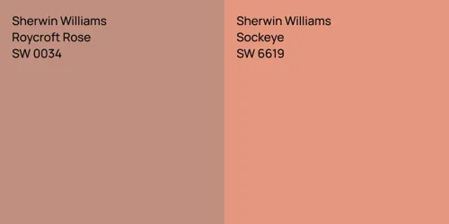 Sherwin Williams SW 0034 and SW 9081 differ significantly in saturation. Sherwin Williams SW 0034 is more saturated.