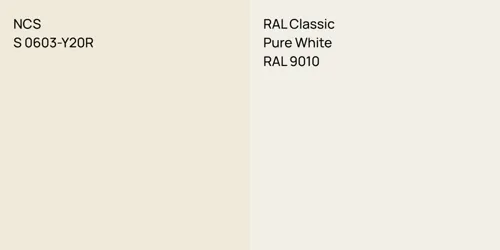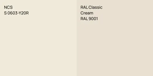 Despite their differences, both colors share a similar value, NCS S 0603-Y20R radiating a lighter essence compared to S 1002-Y50R.