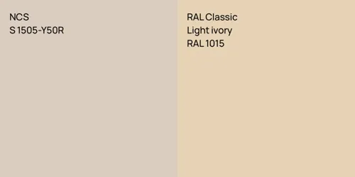 Despite their differences, both colors share a similar value, with NCS S 1505-Y50R is being darker.