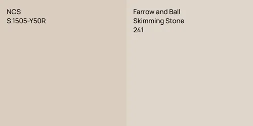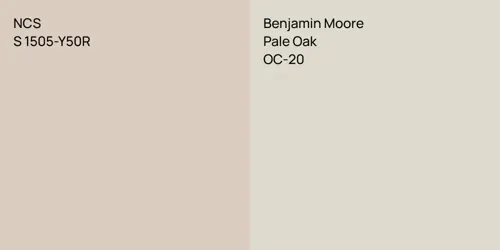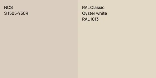 NCS S 1505-Y50R and S 1002-R50B differ significantly in saturation. NCS S 1505-Y50R is more saturated.