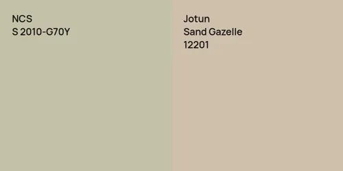 Despite their differences, both colors share a similar value, with NCS S 2010-G70Y is being darker.