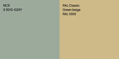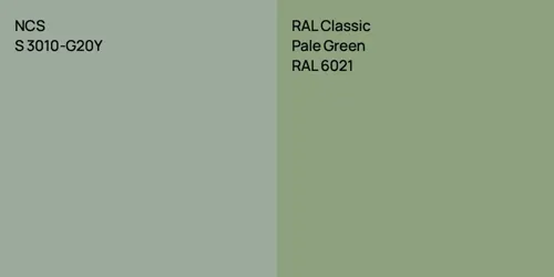 They differ in their values, NCS S 3010-G20Y radiating a lighter essence compared to S 5010-B50G.