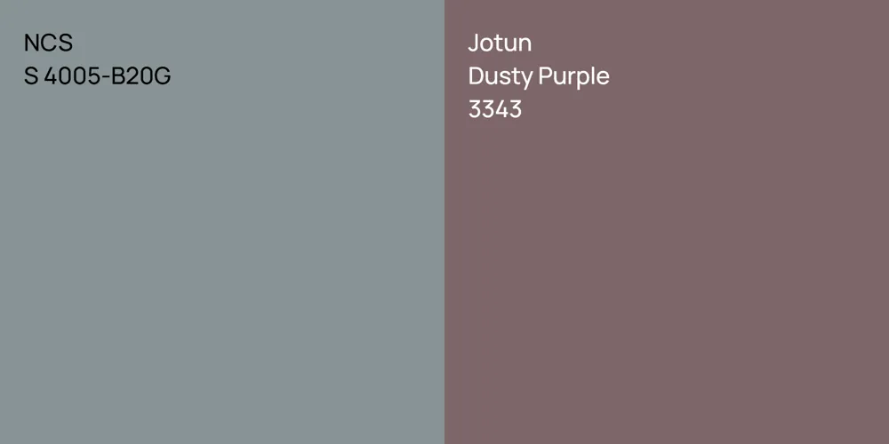 The colors, each unique in their hue and saturation, embody their own individual beauty and value. It's important to note that the colors have different hues. NCS S 4005-B20G leans towards hues, while Jotun 3343 is .
