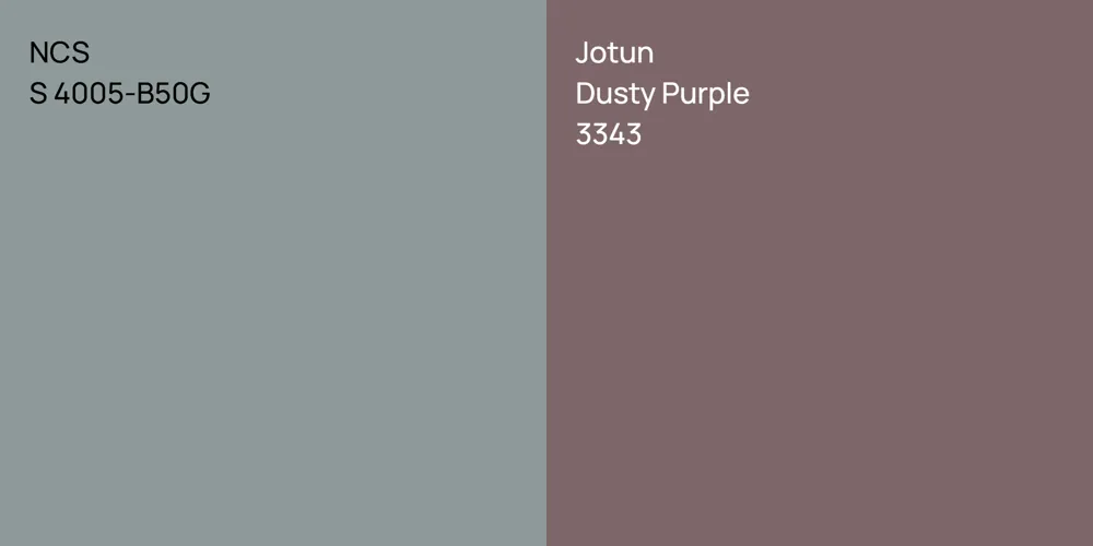 The colors, each unique in their hue and saturation, embody their own individual beauty and value. It's important to note that the colors have different hues. NCS S 4005-B50G leans towards hues, while Jotun 3343 is .