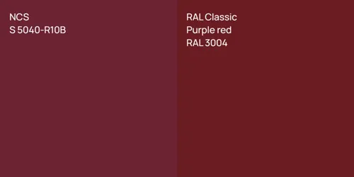 Despite their differences, both colors share a similar value, with NCS S 5040-R10B is being darker.