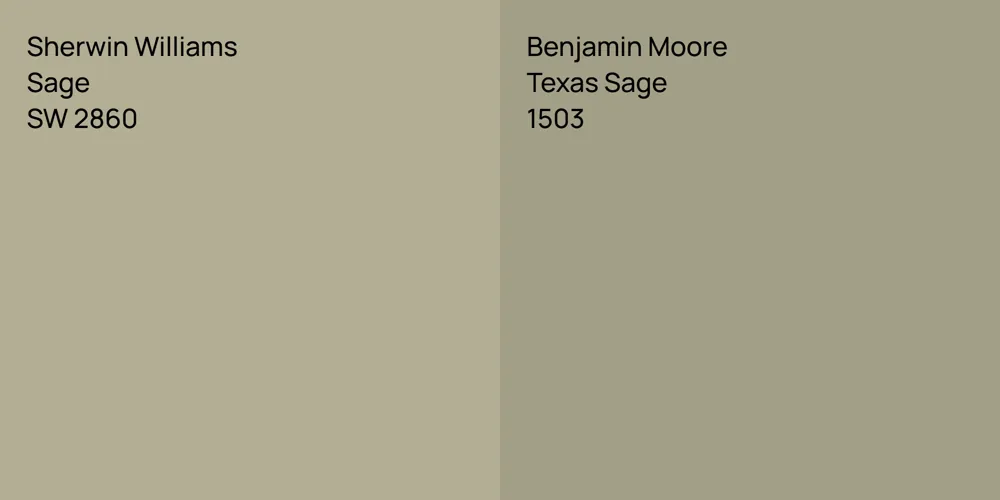 Despite their differences, both colors share a similar value, Sherwin Williams SW 2860 radiating a lighter essence compared to 1503.