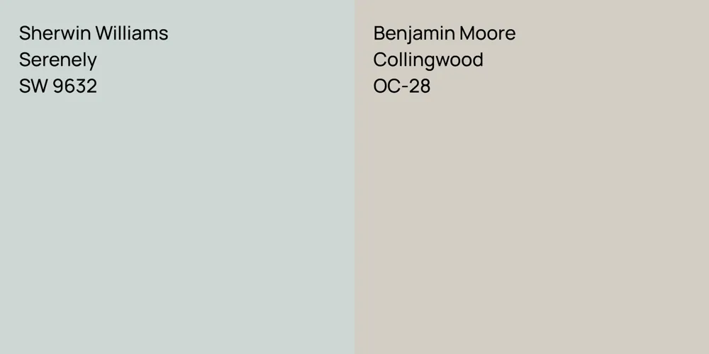 Despite their differences, both colors share a similar value, Sherwin Williams SW 9632 radiating a lighter essence compared to OC-28.