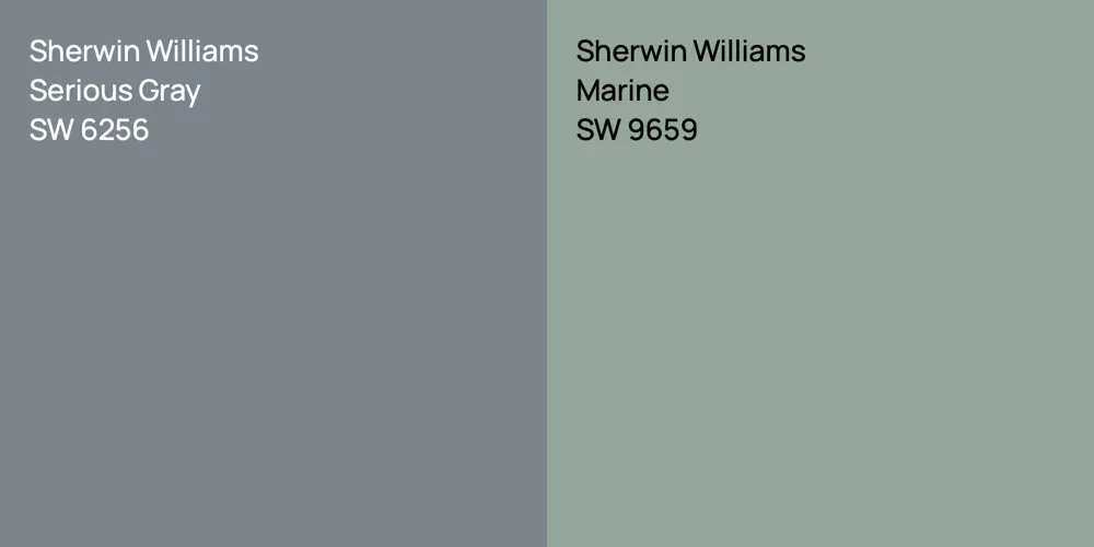 The colors, each unique in their hue and saturation, embody their own individual beauty and value. It's important to note that the colors have different hues. Sherwin Williams SW 6256 leans towards hues, while Sherwin Williams SW 9659 is .