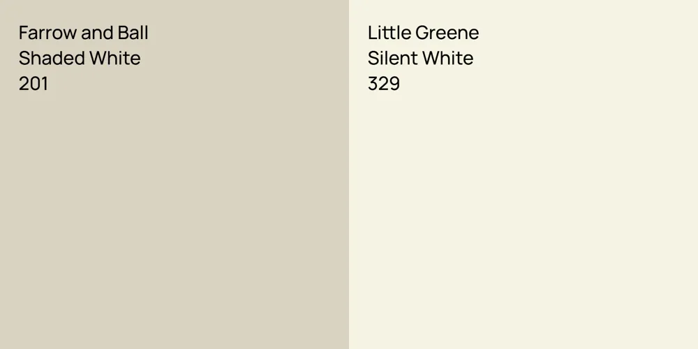 The colors, each unique in their hue and saturation, embody their own individual beauty and value. It's important to note that the colors have different hues. Farrow and Ball 201 leans towards hues, while Little Greene 329 is .