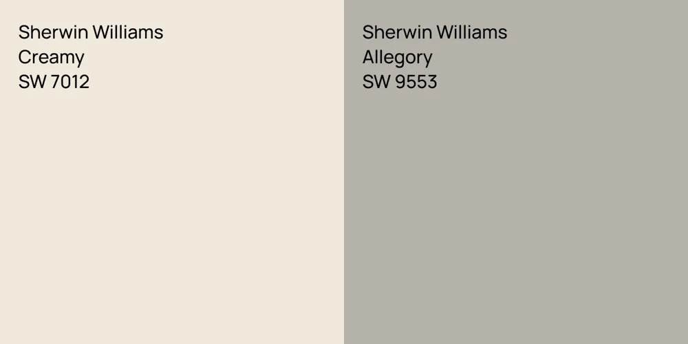 Sherwin Williams SW 7012 and SW 9553 differ significantly in saturation. Sherwin Williams SW 7012 is more saturated.
