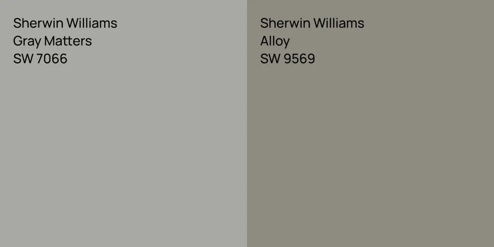 The colors, each unique in their hue and saturation, embody their own individual beauty and value. It's important to note that the colors have different hues. Sherwin Williams SW 7066 leans towards hues, while Sherwin Williams SW 9569 is .